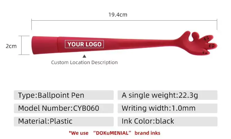 ● Se nota la forma inolvidable: ¿Quiere un bolígrafo publicitario que realmente vuelva la cabeza? Elaboramos formas de dedos salvajes, ergonómicas o francamente funky, no hay palos aburridos aquí. La pluma publicitaria de la forma del dedo captará la atención a la vista y luego se asegurará de que su marca en la mente de su cliente en todos los tiempos.