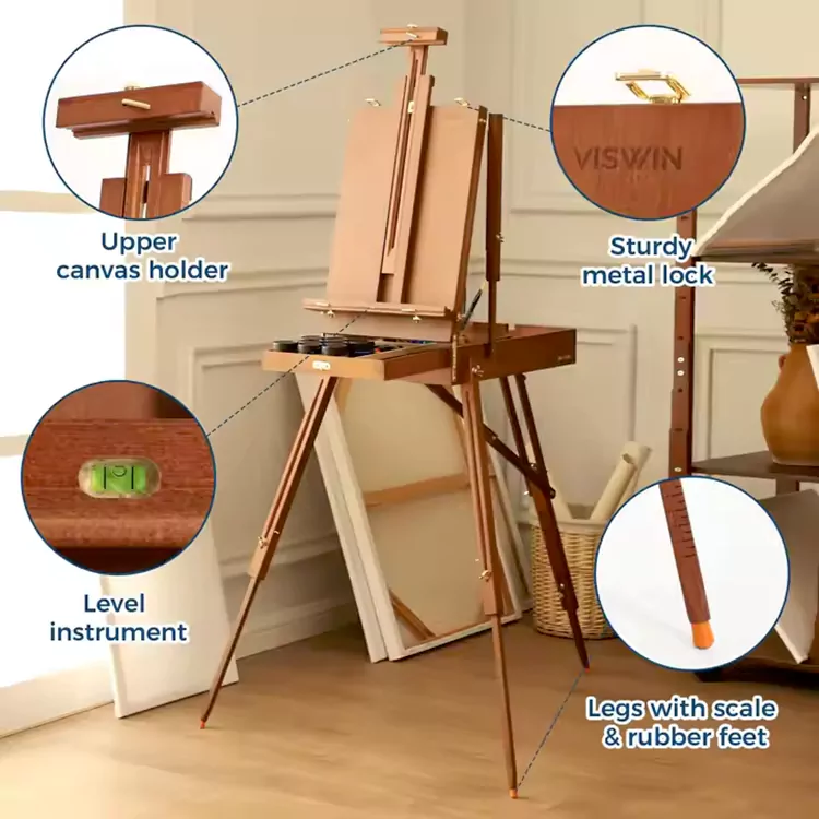 *Aplicaciones: Los pintores del aceite transportan el caballete francés para bocetos del amanecer; Los artistas acrílicos lo angustian en cafeterías. Su rango de altura de 57 "-72" + inclinación hacia adelante maneja acuarelas, aceites, carbón. Más de 300 estudios profesionales lo usan porque una plataforma conquista estudios, campos, salas de estar.